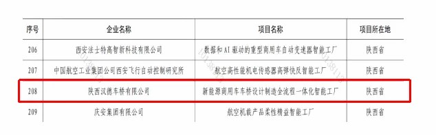 近日,工信部官網正式公布了《關于開展2024年度智能工廠梯度培育行動的通知》(工信廳聯通裝函〔2024〕399號)文件,陜西漢德車橋有限公司“新能源商用車車橋設計制造全流程一體化智能工廠”項目成功獲批國家工信部首批卓越級智能工廠。